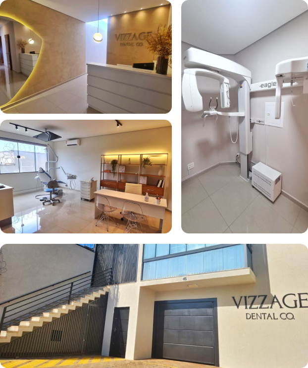 A Vizzage Odontologia traz na bagagem toda a experiência dos seus três sócios, Dra.Tatyane Ayumi Shiga, Dra.Thais Sampaio e Fabrício Gabriel Siansi, e de uma equipe formada por especialistas em cada área da odontologia.